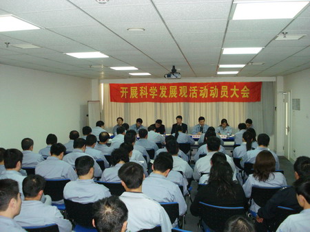 動員大會由總經理孫龍平同志主持。會上,首先宣讀了《關于成立公司學習實踐科學發(fā)展觀領導小組的通知》,荏原博泵黨總支副書記姜作棟同志宣讀了公司《深入學習實踐科學發(fā)展觀活動的實施方案》,明確了各階段的任務要求和具體責任人,并公布了公司信箱、意見箱,鼓勵廣大黨員、群眾對公司開展好學習實踐科學發(fā)展觀活動獻計獻策。